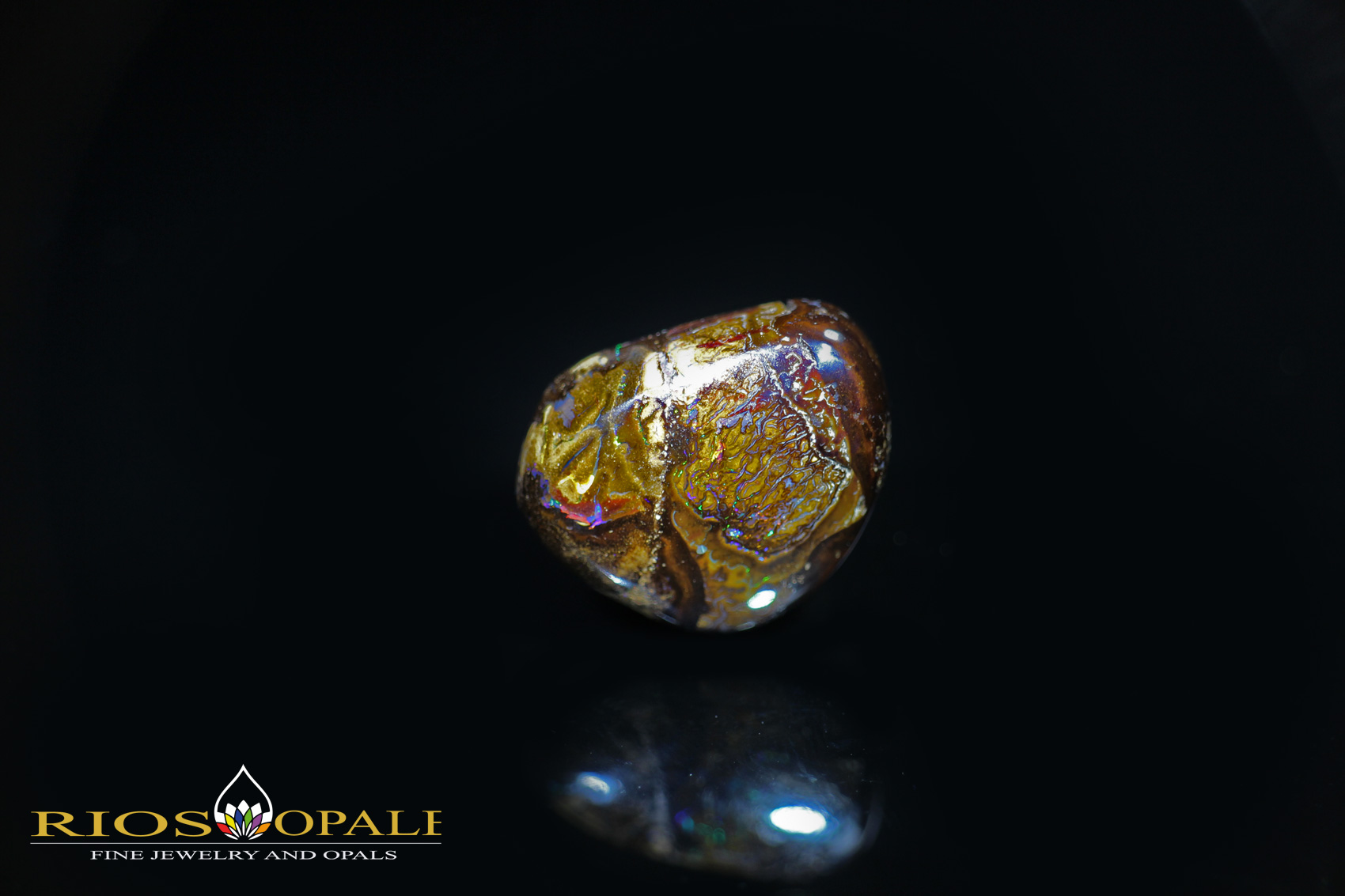 Der 27,11ct große Stein zeigt eine Vielzahl von bunten Opaladern, die von rot über balu bis grün reichen.